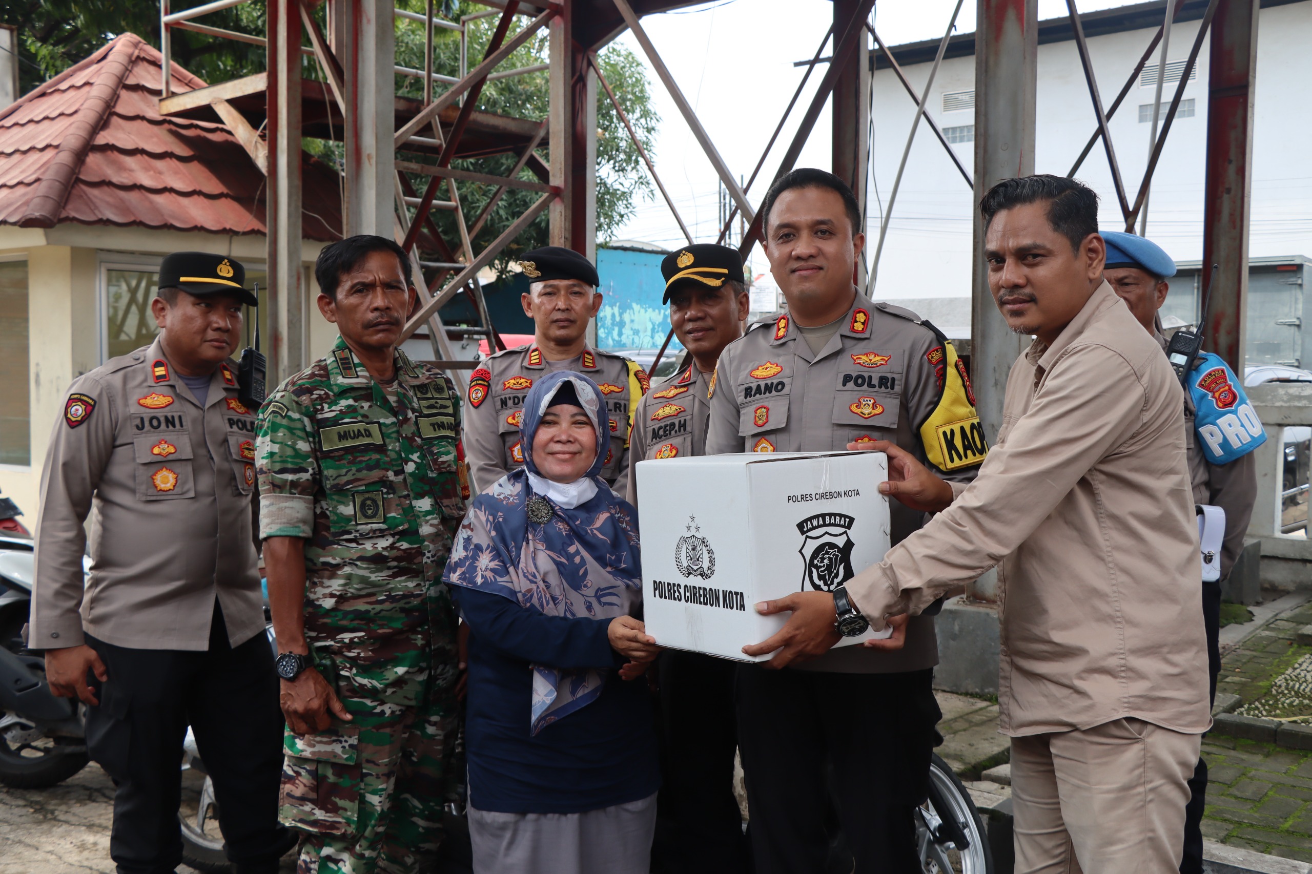 Usai monitoring Kapolres Cirebon Kota AKBP Muhammad Rano Hadiyanto secara simbolis memberikan bingkisan kepada petugas PPK Lemahwungkuk seraya berpesan untuk tetap menjaga kesehatan.
