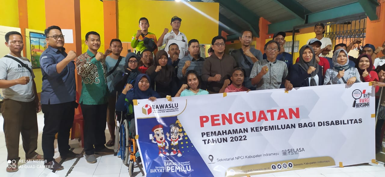 Bawaslu Kabupaten Indramayu melakukan sosialisasi penguatan pemahaman kepemiluan bagi disabilitas. Sosialisasi tersebut dilaksanakan di ruang rapat National Paralympic Committee Indonesia (NPCI) di kompleks GOR Singalodra Sindang, Selasa (19/7/2022).