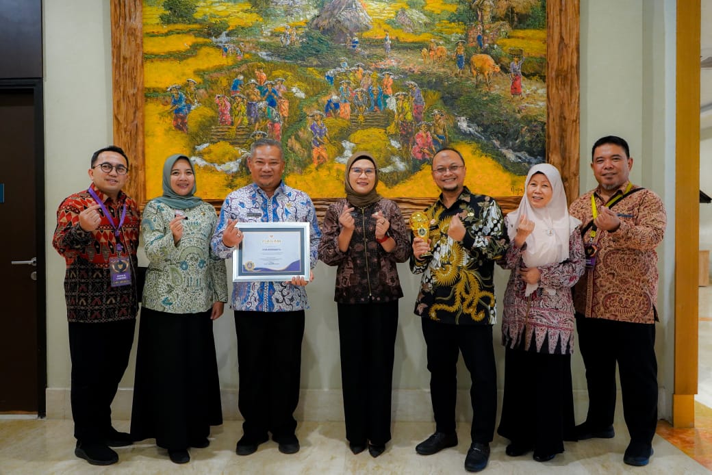 Bupati Indramayu Nina Agustina menerima Anugerah ‘Universal Health Coverage’ (UHC) atas capaian kepesertaan masyarakat Indramayu pada BPJS Kesehatan yang mencapai 99,9 persen.