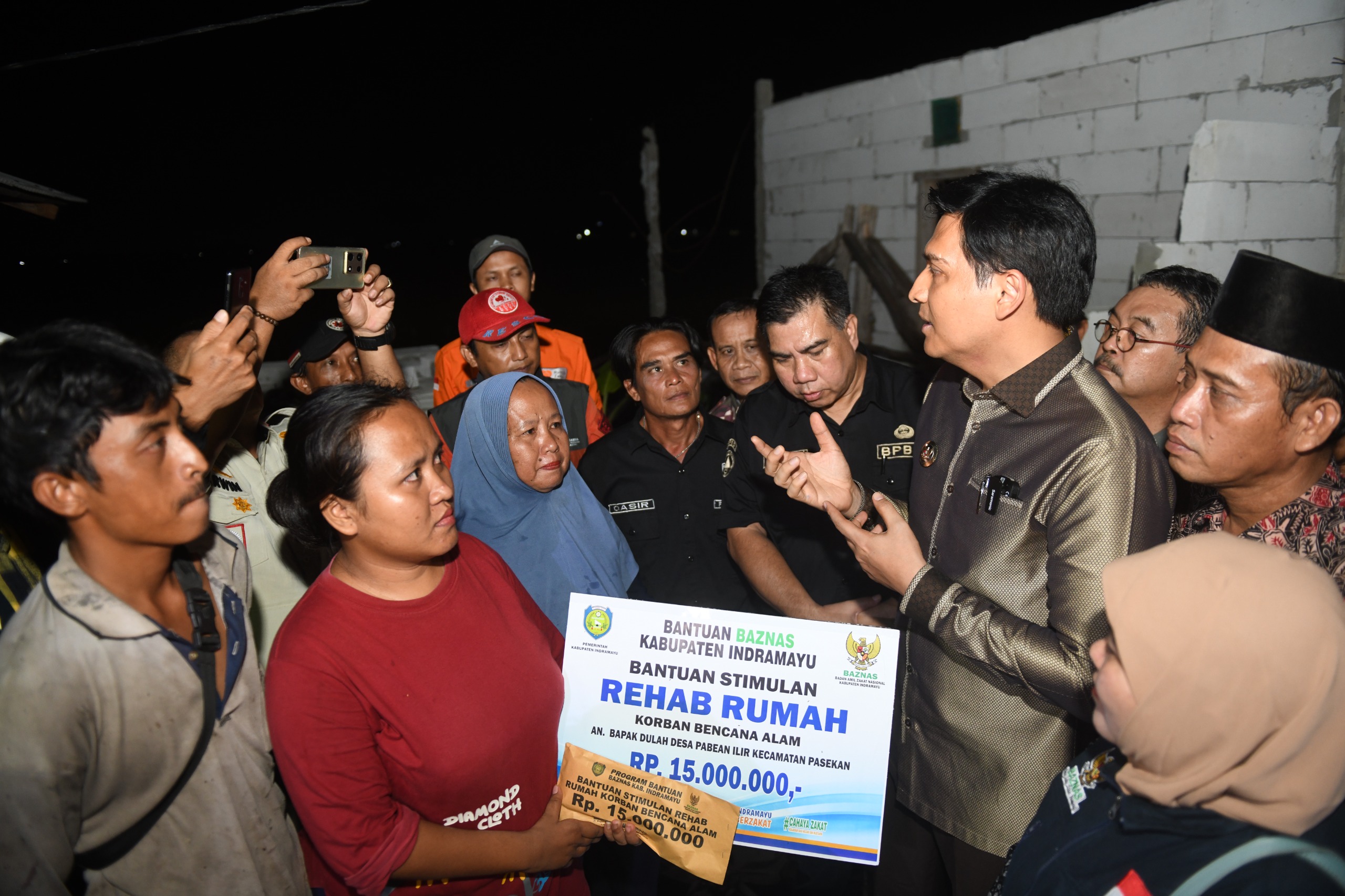 Bantuan yang diberikan bersumber dari Baznas Kabupaten Indramayu yang diperuntukan bagi warga yang rumahnya rusak berat/roboh masing-masing sebesar Rp15.000.000,00 kepada 6 orang warga Desa Pabean Ilir. Kemudian rusak sedang masing-masing sebesar Rp1.000.000,00 kepada 4 orang warga Desa Totoran.