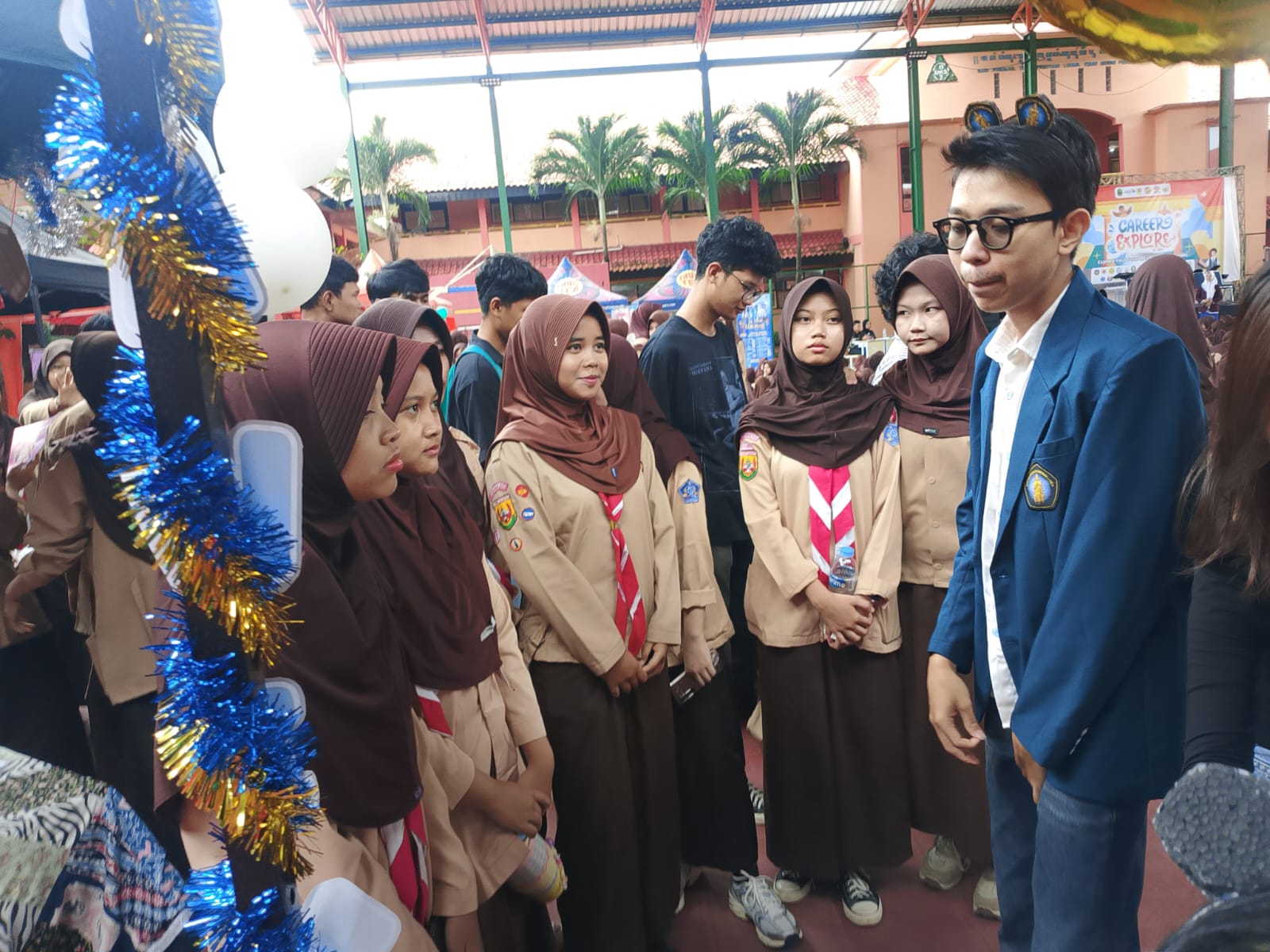 Para siswa tidak hanya mengunjungi stand kampus, tetapi juga berkesempatan berinteraksi langsung dengan mahasiswa dari berbagai bidang, mulai dari Sosial Humaniora (Soshum), Sains dan Teknologi (Saintek), hingga Ekonomi.