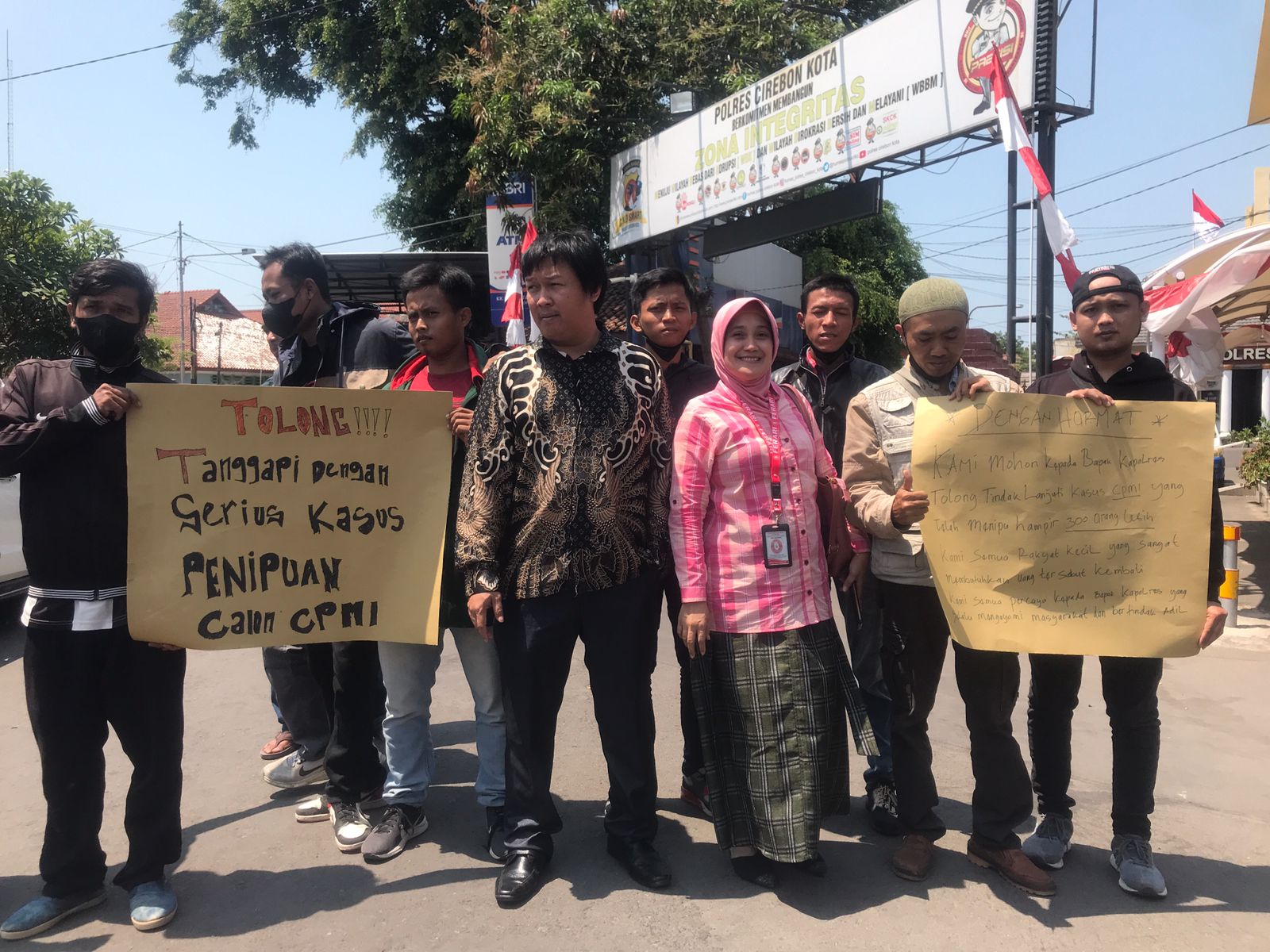 ” Sebanyak 300 orang Calon Pekerja Migran (CPMI) dari berbagai daerah didampingi kuasa hukum dari Maps Lawyers Indonesia mendatangi Mako Polres Cirebon Kota (Ciko), Kamis (7/9/2023)”.