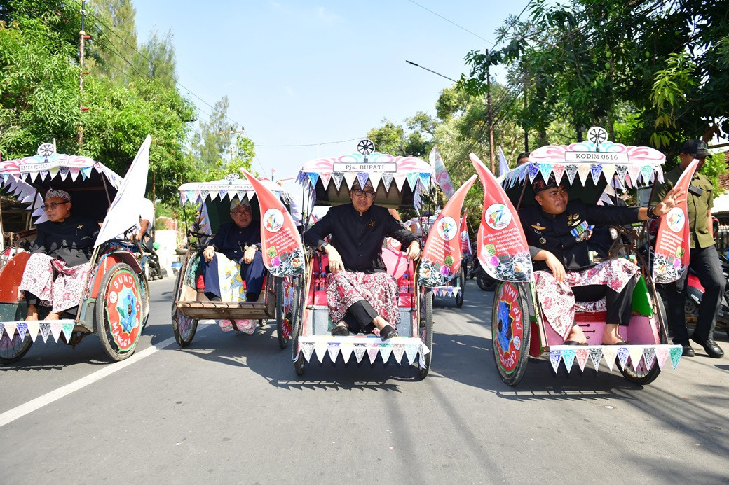 Kirab dihadiri oleh Pj. Gubernur Jawa Barat yang diwakili Plh. Asisten Pemerintahan dan Kesra Pemprov Jawa Barat, Pjs. Bupati Indramayu, Sekretaris Daerah, Forkopimda, BUMN dan BUMD, serta Kepala SKPD dan pejabat lainnya di lingkungan Pemkab Indramayu, dengan pawai menaiki ratusan Beca hias disertai para istri.