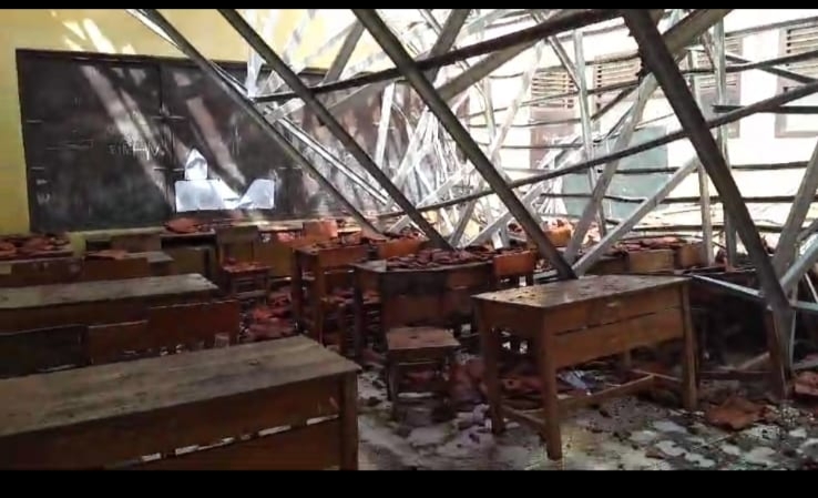 Pelita News I Indramayu – Empat ruangan SD Negeri 2 Sukadana, Kecamatan Tukdana, Kabupaten Indramayu, ambruk, Sabtu, 6 Juli 2024 sekira pukul 16.30 WIB. Empat ruangan itu terdiri dari 3 ruang kelas dan 1 ruang guru. Ambruknya ruangan SS itu dampak curah hujan tinggi.