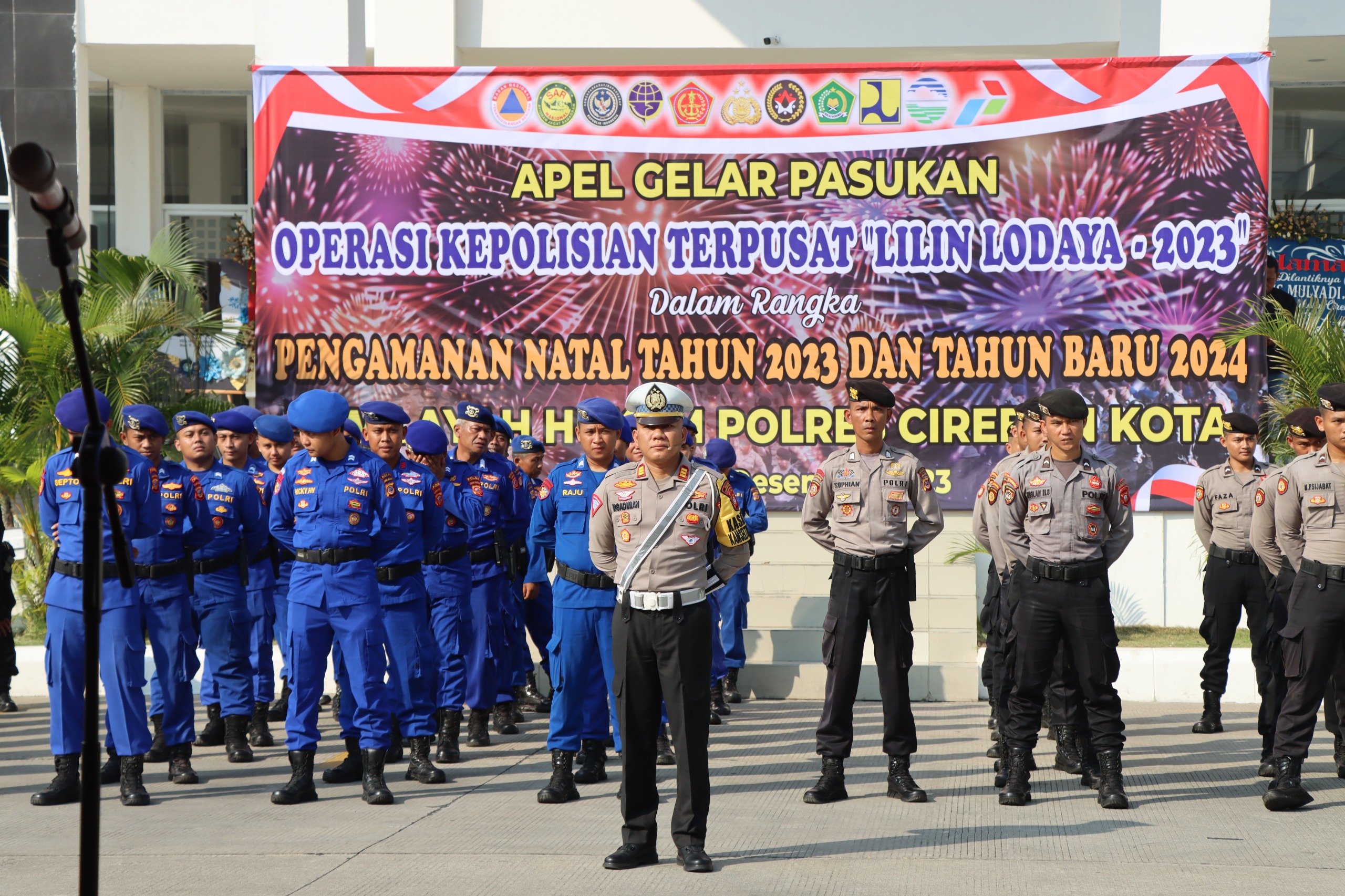 Cirebon.- Jelang Natal 2023 dan Tahun Baru 2024, Polres Cirebon Kota laksanakan Apel Gelar Pasukan Operasi Lilin Lodaya Tahun 2023.
