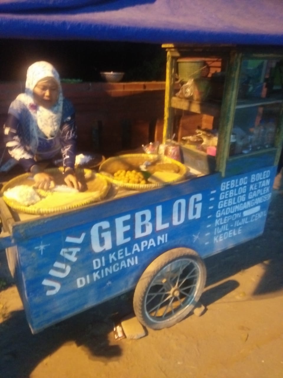 Di jelaskan oleh iman selaku pengunjung setia makanan jaman dahulu seperri geblog, ketan hitam, ketan putih, iwil iwil serta makanan tempo dahulu bisa di jumpai di depan makam panembahan losari yang terletak di desa losari lor kecamatan losari kabupaten brebes.