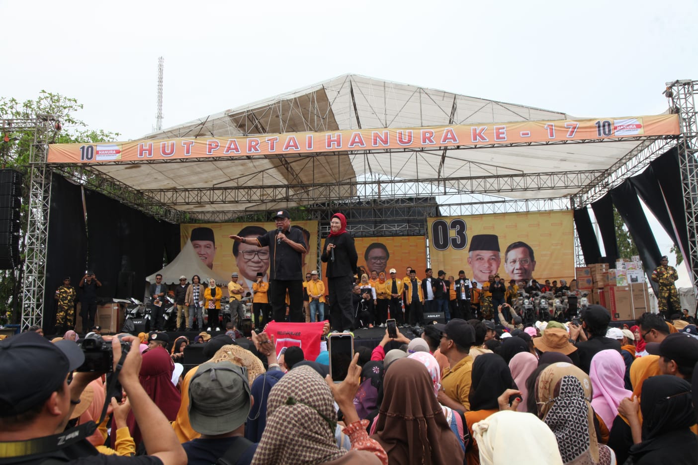 Pelita News, Indramayu – Perayaaan Hari Ulang Tahun (HUT) ke-17 Partai Hanura meriah. Perayaan yang dihadiri Ketua Umun (Ketum) Partai Hanura Oesman Sapta Odang (OSO) didampingi Ketua DPC Partai Hanura Kabupaten Indramayu, H Ahmad Fathoni ini dipusatkan di Sport Center (SC) Indramayu, Sabtu (30/12/2023).