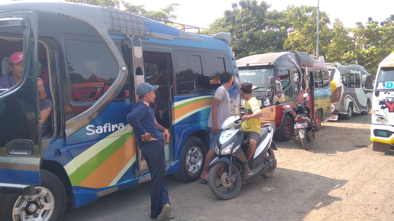 Diketahui, para sopir elf dan angkot sengaja memarkirkan kendaraannya di Terminal Sindang sambil menunggu keputusan perwakilannya membahas tentang tarif baru yang dilakukan di Kantor Dinas Perhubungan setempat.