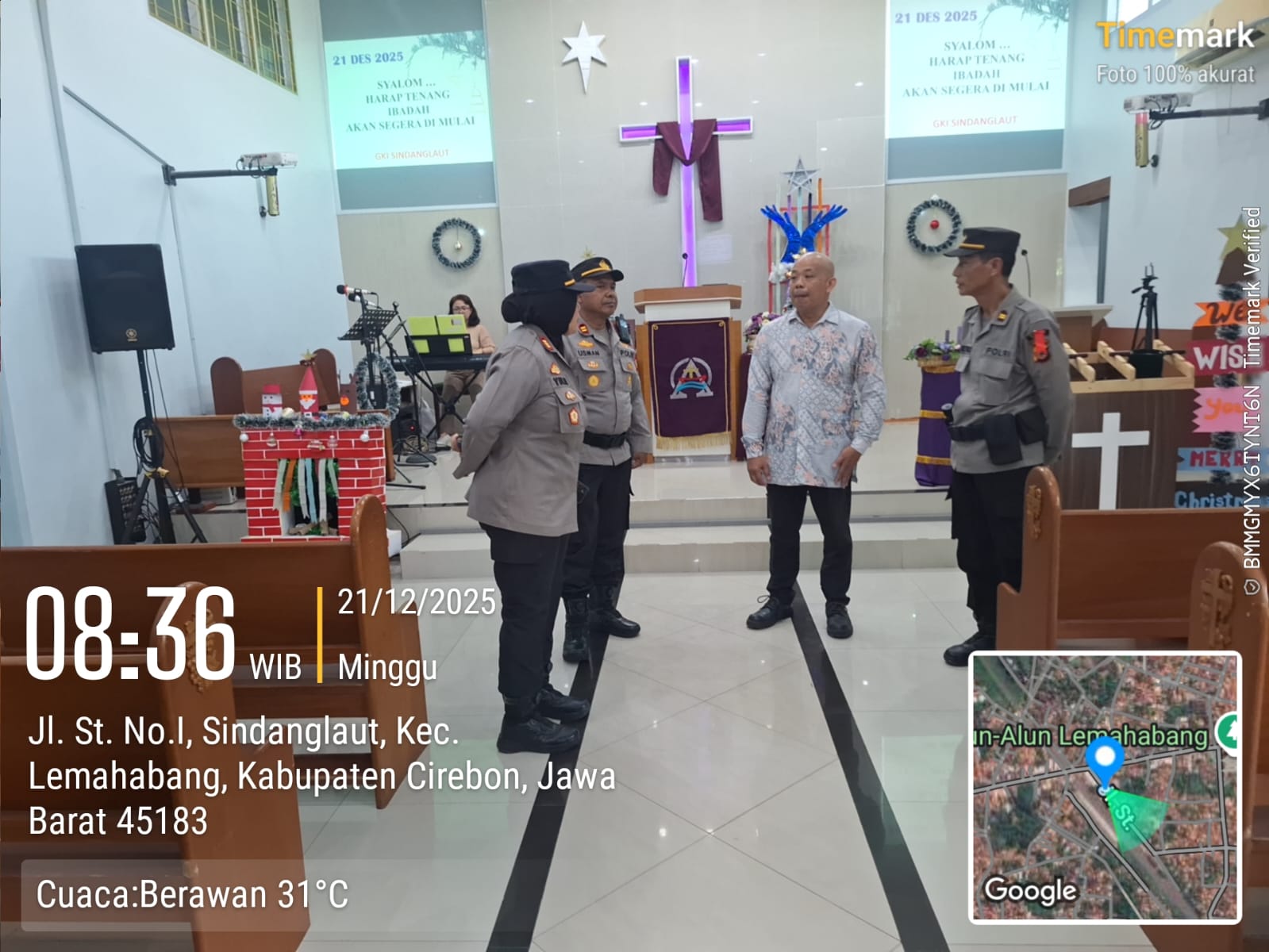 Pelita News | Cirebon Timur – Mendukung terciptanya situasi aman dan nyaman menjelang perayaan Natal 2025, Pos Pam Ops Lilin Lodaya Lemahabang Polresta Cirebon Polda Jawa Barat terus meningkatkan patroli di dua gereja yang berada di wilayah Kecamatan Lemahabang, Kabupaten Cirebon, Selasa (23/12/25). Langkah ini dilakukan untuk memastikan keamanan ibadah jemaat dan terciptanya suasana yang aman, tertib, dan kondusif.