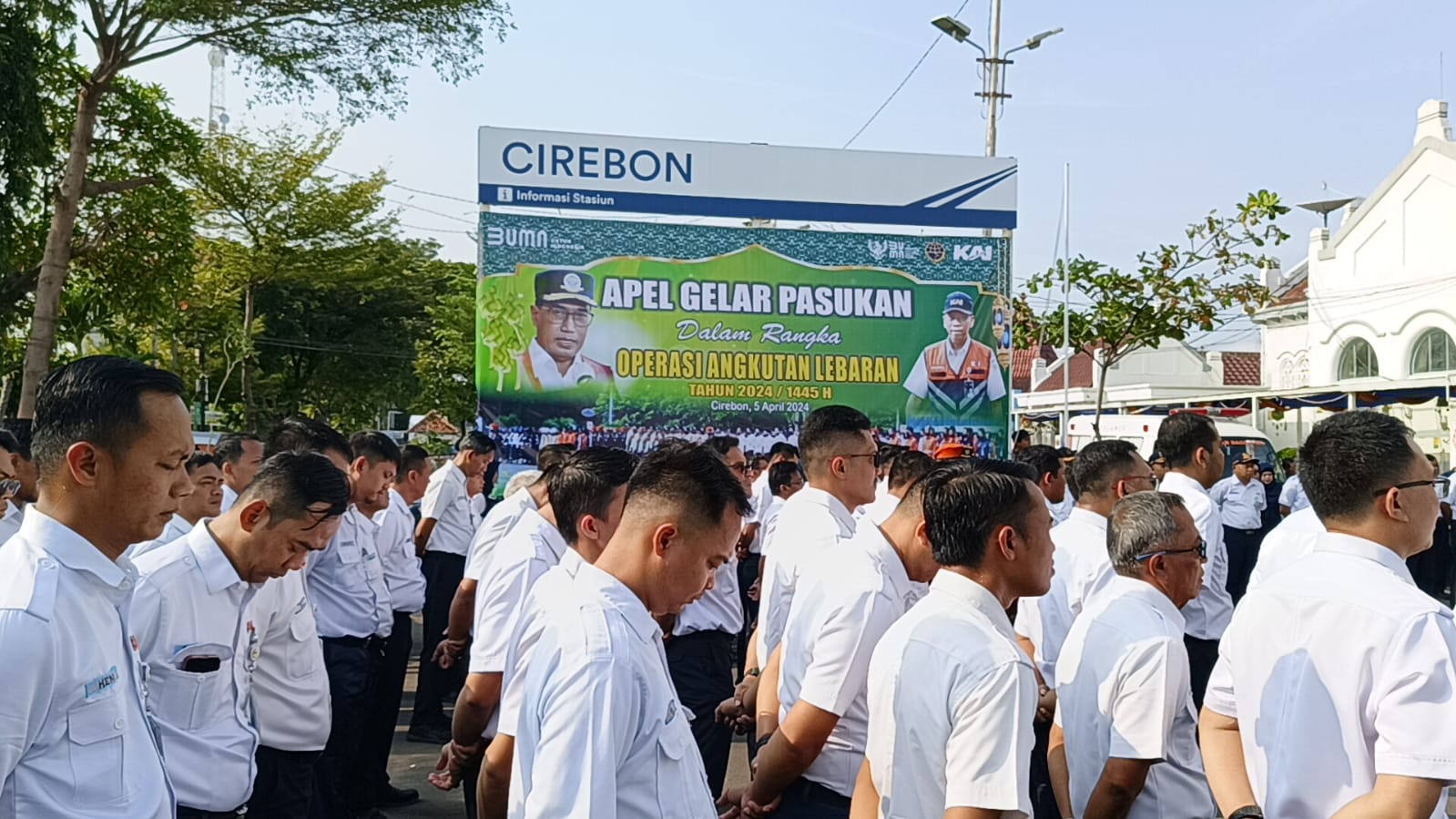 Guna memastikan kesiapan personel, Daop 3 Cirebon melaksanakan Apel Gelar Pasukan Pengamanan Angkutan Lebaran 2024 di halaman Parkir Stasiun Cirebon.