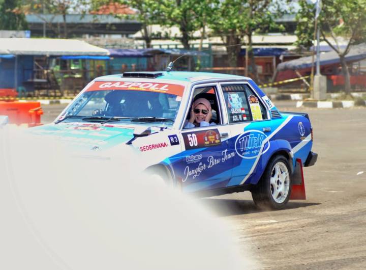 Dengan menggunakan Corolla DX yang dikemudikan Freddy Ojo, mobil pun melaju kencang dan langsung melakukan manuver berputar 380 derajat mengitari barier dan menuju jalur sprint berikutnya.