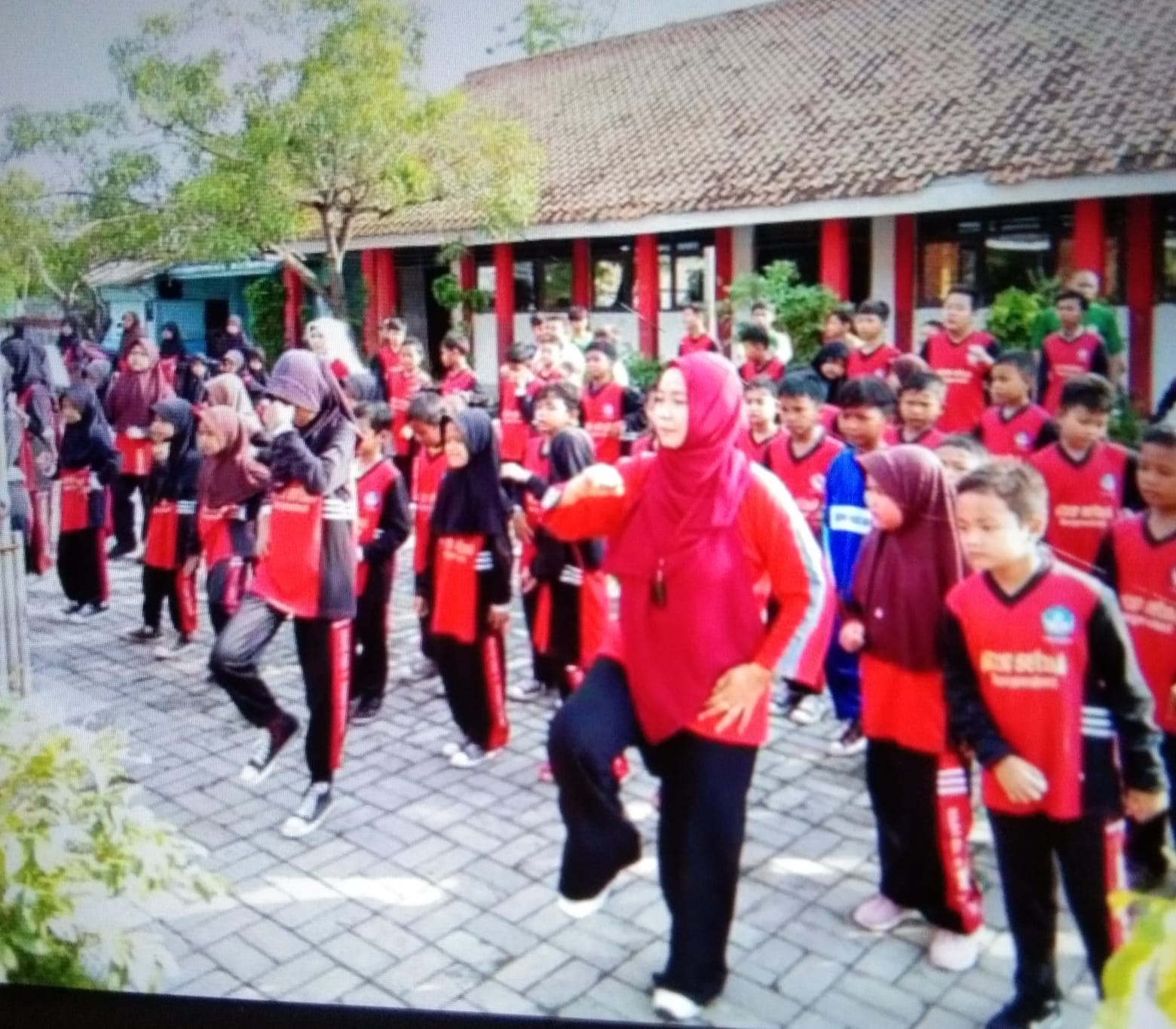 Gerakan demi gerakan yang dilakukan oleh instruktur olah raga , dalam hal ini kepala sekolah , terus diikuti oleh semua yang berjejer dihalaman sekolah , kegiatan olah raga yang dipimpin oleh kepala