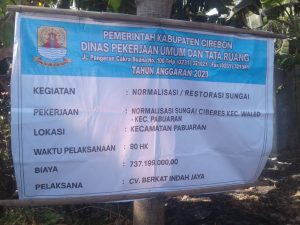 “panjang sungai yang dikerjakan 1,5 Km, dengan lebar 20 meter, dan sungai itu ada di dua wilayah kecamatan yakni Waled dan Pabuaran,”sebutnya.