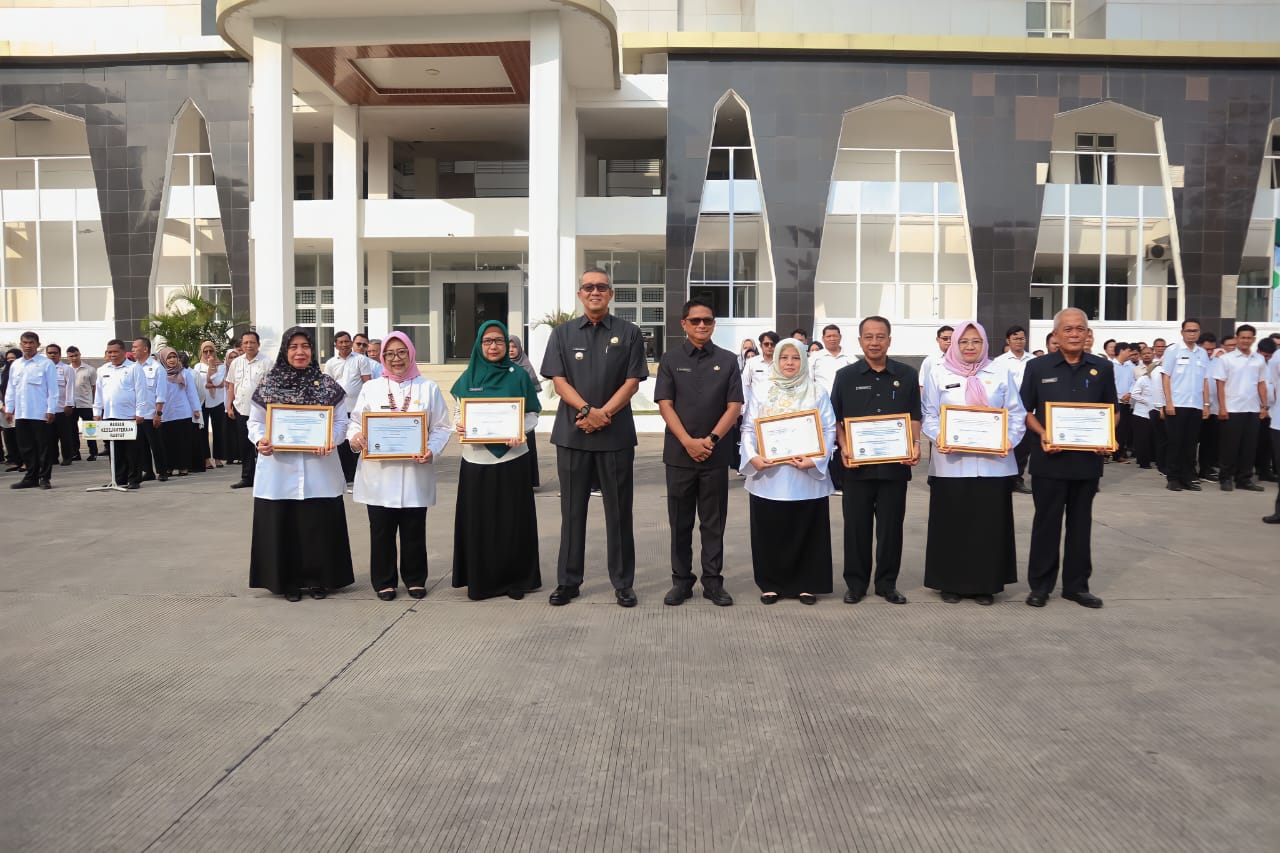 Cirebon, – Pj. Wali Kota Cirebon Drs. H. Agus Mulyadi, M.Si., memimpin apel pagi sekaligus menyerahkan Piagam Penghargaan Penganugerahan Predikat Penilaian Kepatuhan Penyelenggaraan Pelayanan Publik Tahun 2023 dari Ombudsman Republik Indonesia (RI) dan Parahita Ekapraya Kategori Pratama Tahun 2022, Rabu (24/1/2024).