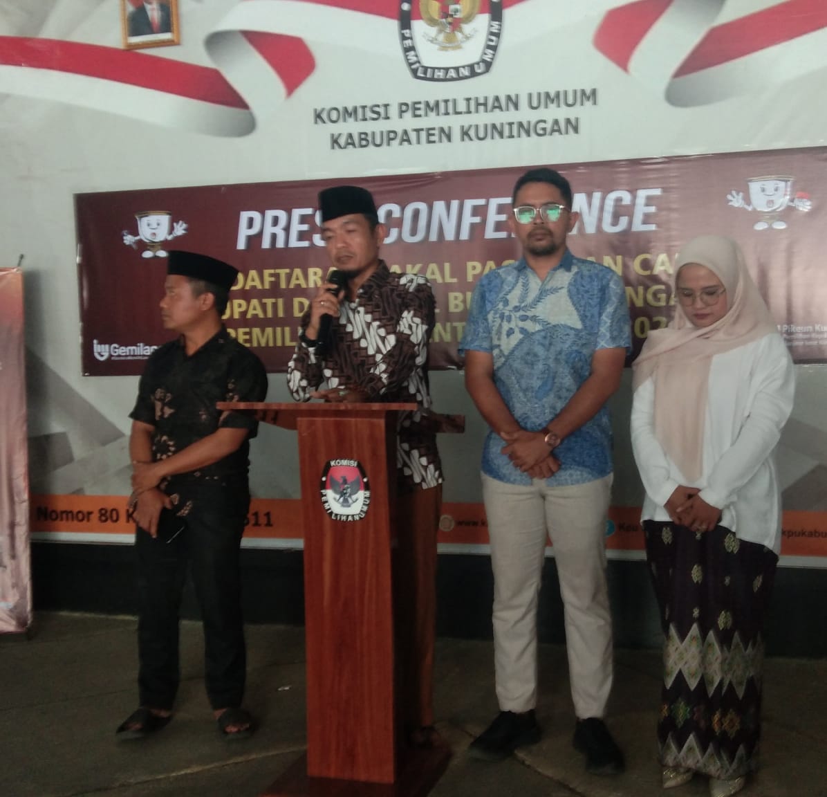Hadir dengan lengkap Komisioner KPU ada Aop Achmad Mustafa Divisi SDM partisipasi Humas, Maman Sudiaman Ketua Divisi Perencanaan Data dan Informas, Aan Nahrudin Ketua Divisi Hukum dan Pengawasan. Selain itu juga dihadiri Ketua Bawaslu Firman Serta para Kabidnya. Dalam penyelenggaraan penerimaan pendaftaran paslon Bupati dan Wakil Bupati dalam pemilihan serentak Pemilu Kada 2024. “Pertama dan paling utama Mariyah Kira penjatkan puji dan Syukur Kepala Allah SWT Karena Atas nikmat dan karunianya diberikan sehat Wal Afiat Juga dengan Ridhonya sehingga kita bisa hadir di Aula KPU Ini untuk menerima bacalon Bupati dan Wakil Bupati pada pemilu kada serentak tahun 2024 Ini,” Kata Ketua KPU Kuningan.