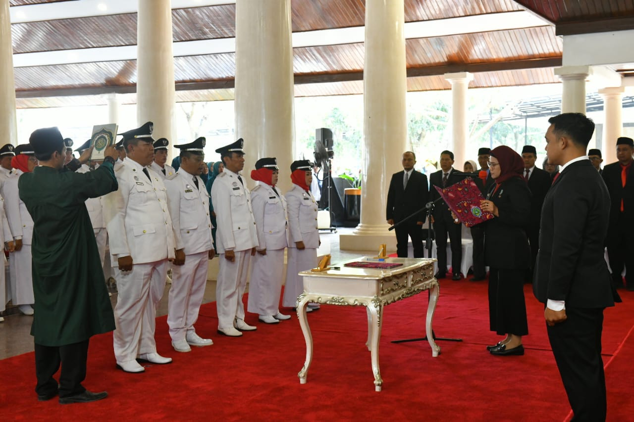 Sebanyak 136 Kuwu di Kabupaten Indramayu dilantik dan diambil sumpahnya oleh Bupati Indramayu Nina Agustina, Rabu (22/5/2024) di Pendopo Indramayu.