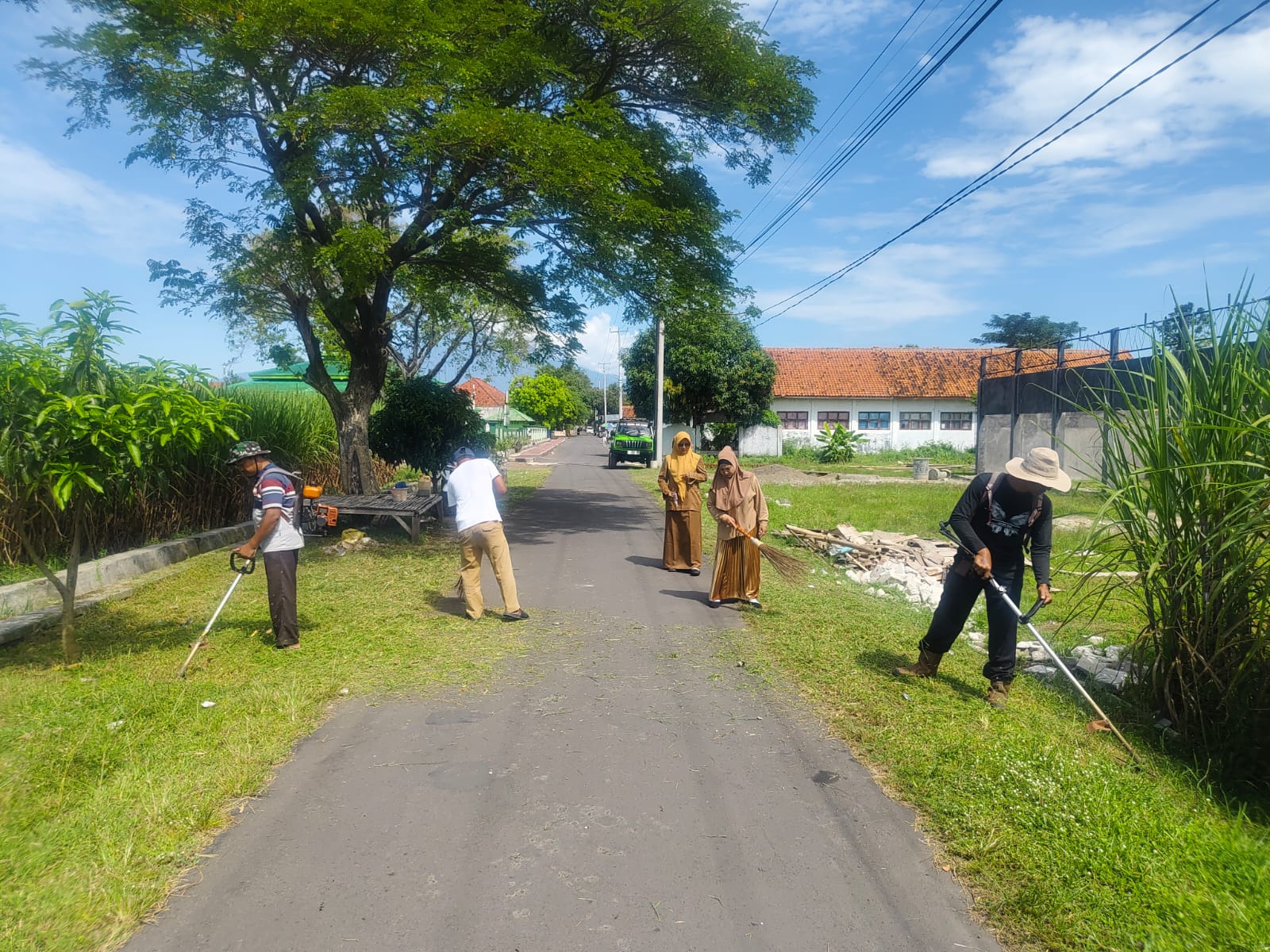 Kerja bakti ini dimulai pada pagi hari, dengan kegiatan memotong rumput liar yang tumbuh di sepanjang jalan desa, memungut sampah yang berserakan, dan membersihkan saluran air yang tersumbat.
