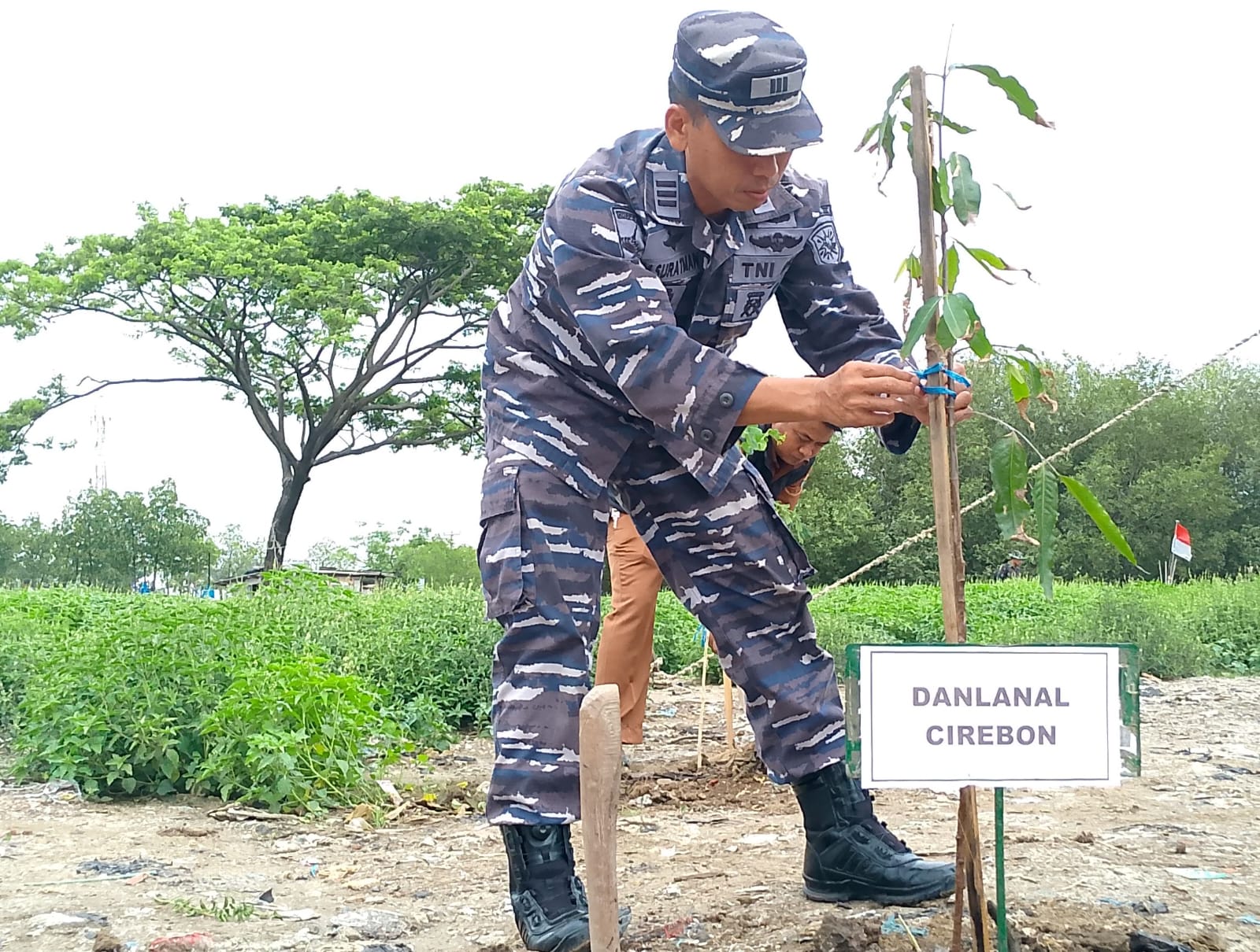Lanal Cirebon Hadiri Karya Bakti Pembersihan Sampah dan Penanaman Pohon di Muara Sukalila
