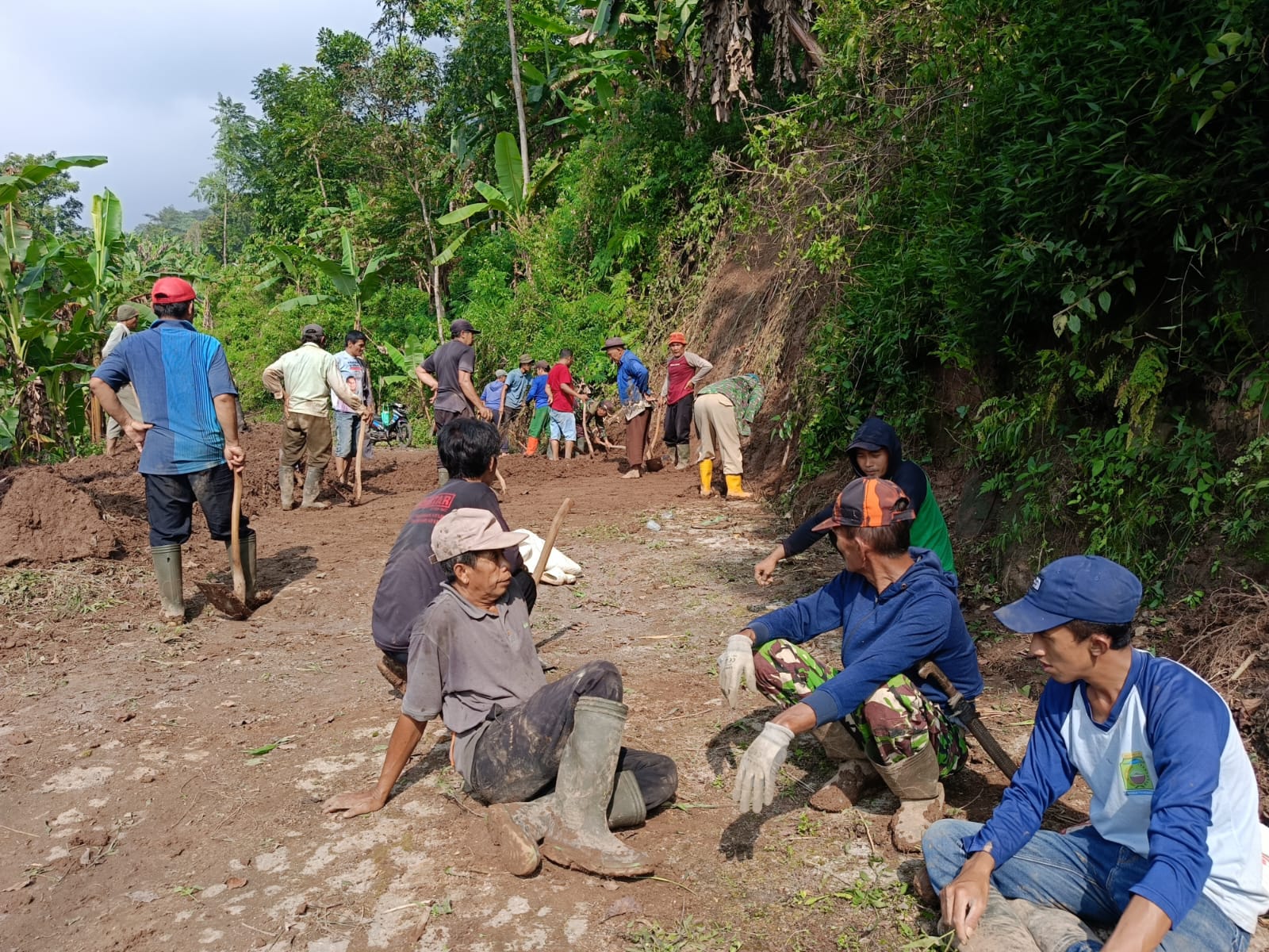 Longsor Tutup Akses Jalan, Warga Desa Sangkanerang Gotong Royong