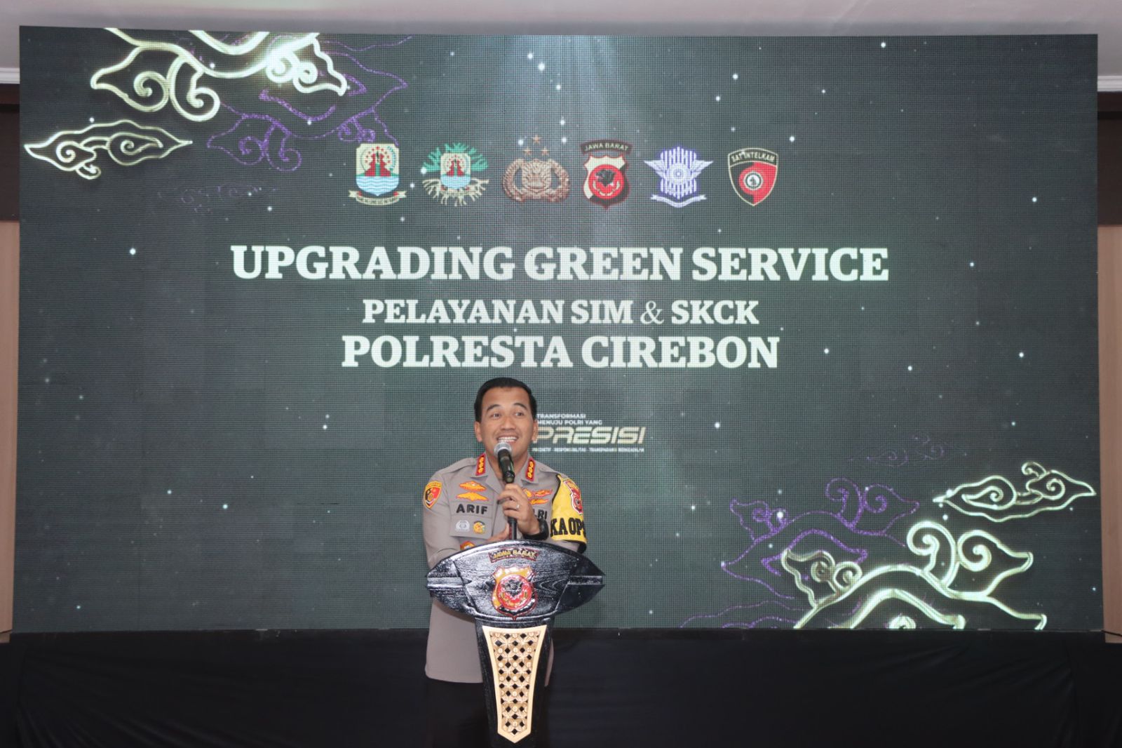 ” Layanan Green Service Polresta Cirebon dalam pembuatan SIM dan SKCK di Satpas Polresta Cirebon, diupgrade, Selasa (5/9/2023). Peningkatan layanan Green Service yang dilaunching sejak setahun lalu tersebut turut dihadiri Forkompimda Kabupaten Cirebon dan sejumlah tamu undangan lainnya”.