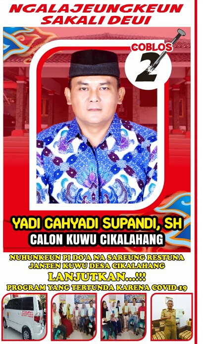 Yadi Cahyadi Supandi, SH, sebagai incumbent, sudah satu periode menjabat sebagai kuwu desa Cikalahang menyatakan dirinya siap memimpin kembali desa Cikalahang untuk periode ke dua