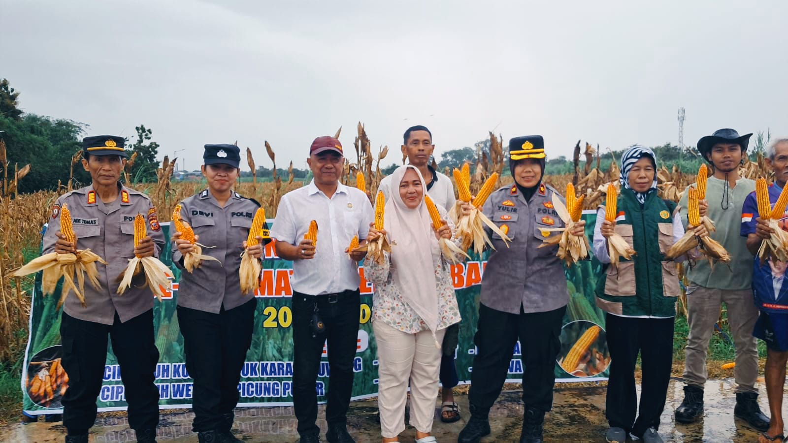 Pemdes Cipeujeuh Kulon Bersama Polsek Lemahabang Panen Perdana Jagung Pipil, Wujudkan Ketahanan Pangan