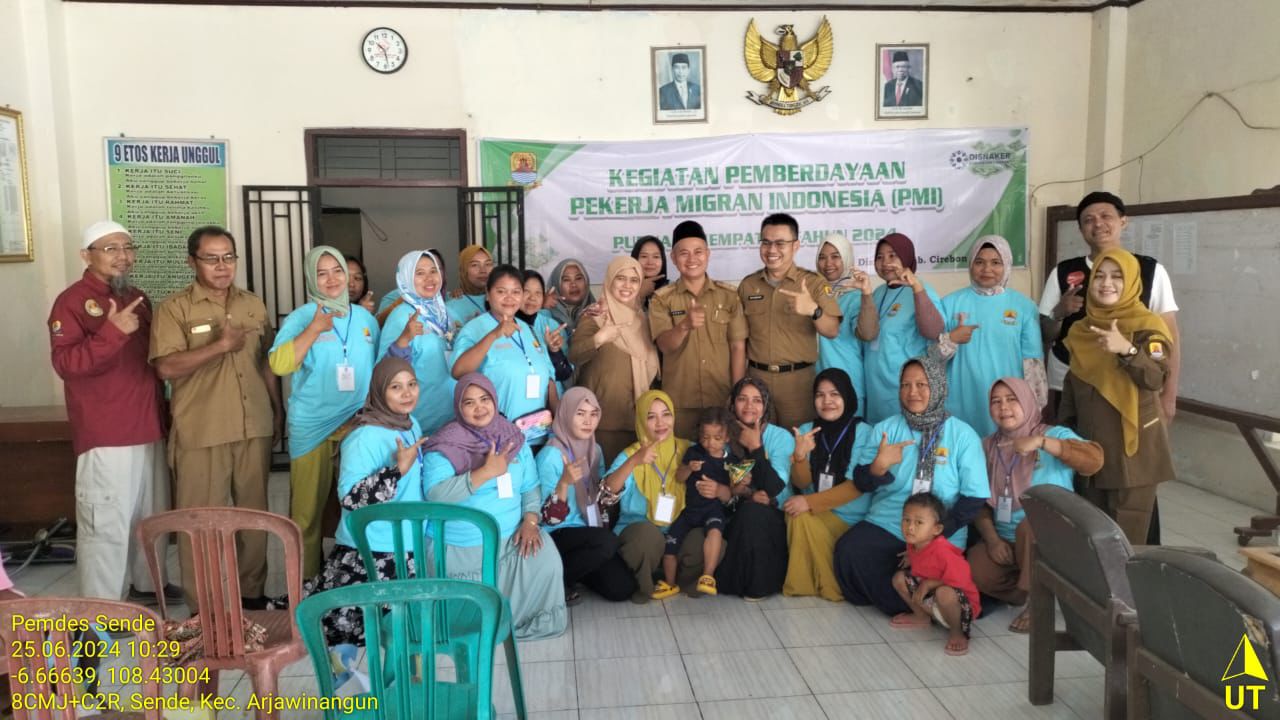 Pemerintah Desa Sende Kecamatan Arjawinangun Kabupaten Cirebon sambut baik kegiatan Pemberdayaan Pekerja Migran Indonesia yang dilaksanakan oleh Dinas Ketenagakerjaan Kabupaten Cirebon yang berlangsung di Balai Desa Sende, Selasa 25/06. Kegiatan tersebut juga dihadiri langsung oleh Kepala Dinas Ketenagakerjaan Kabupaten Cirebon Novi Hendriyanto, SSTP.,M.Si dan jajarannya serta Suma, SM Kuwu Desa Sende dan diikuti oleh puluhan wanita purna pekerja migran.
