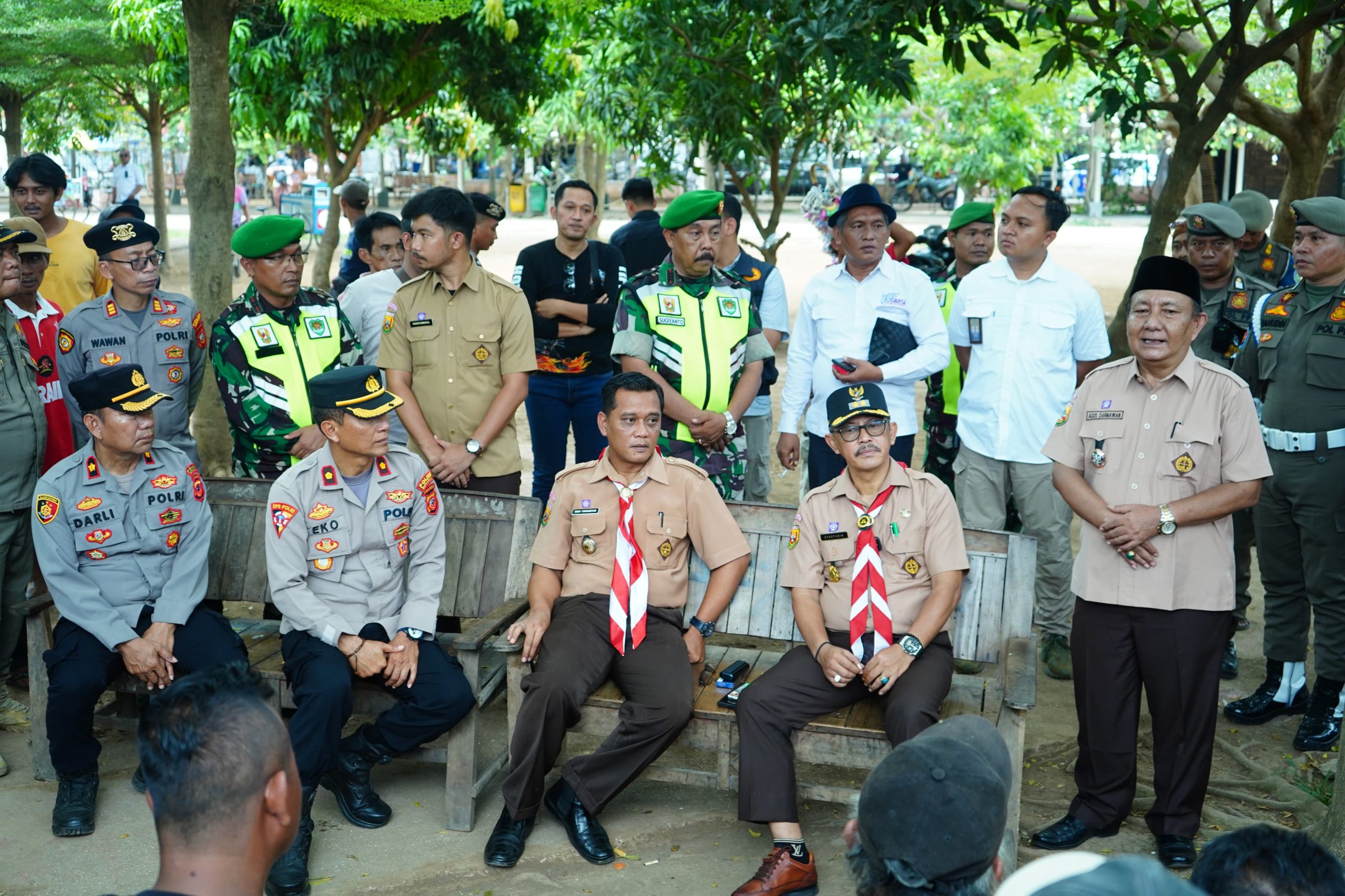 Tim Saber Pungli mengumpulkan puluhan orang yang diduga melakukan pungli terhadap aktivitas perekonomian yang kemudian dikumpulkan di Ruang Terbuka Hijau (RTH) Jatibarang, Rabu (14/5/2025).