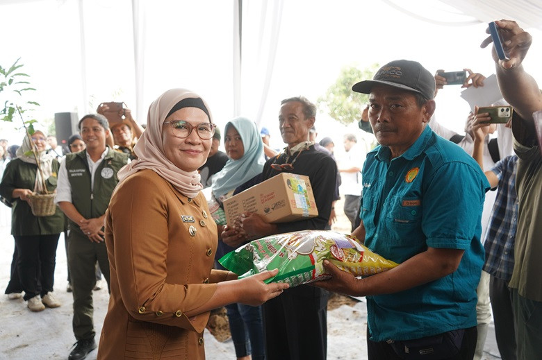 Kementerian Kehutanan berkolaborasi dengan Kementerian Pertanian serta Perum Perhutani melaksanakan Penanaman Serentak Agroforestri Pangan dengan mengintegrasikan tanaman Padi Lahan Kering dengan Tanaman Serbaguna (Multi-Purpose Tree Species/MPTS) dengan pola agroforestry, di Areal Desa Cikawung, Kecamatan Terisi, Kabupaten Indramayu, Selasa (4/2/2024).