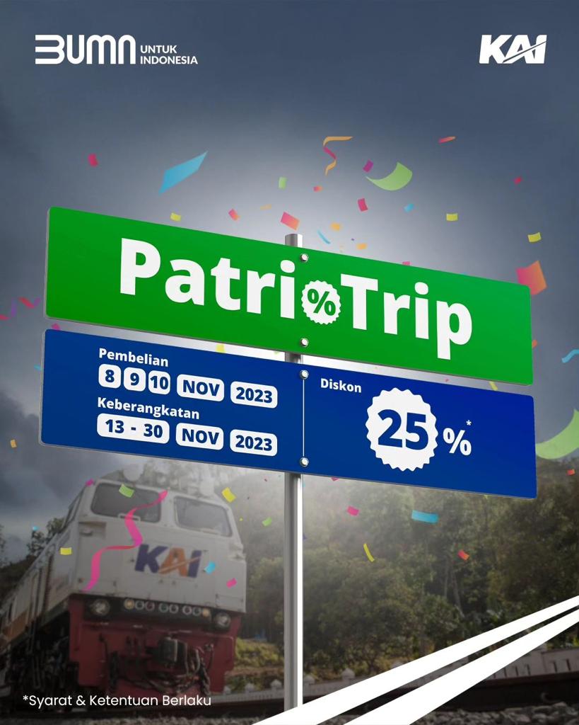 Promo Patriotrip ini, berlangsung untuk pemesanan dari tanggal 8 s.d 10 November 2023, untuk keberangkatan kereta api tanggal 13 s.d 30 November 2023. Tiket promo tersebut dapat dibeli di seluruh channel resmi pemesanan tiket KAI kecuali di loket stasiun.