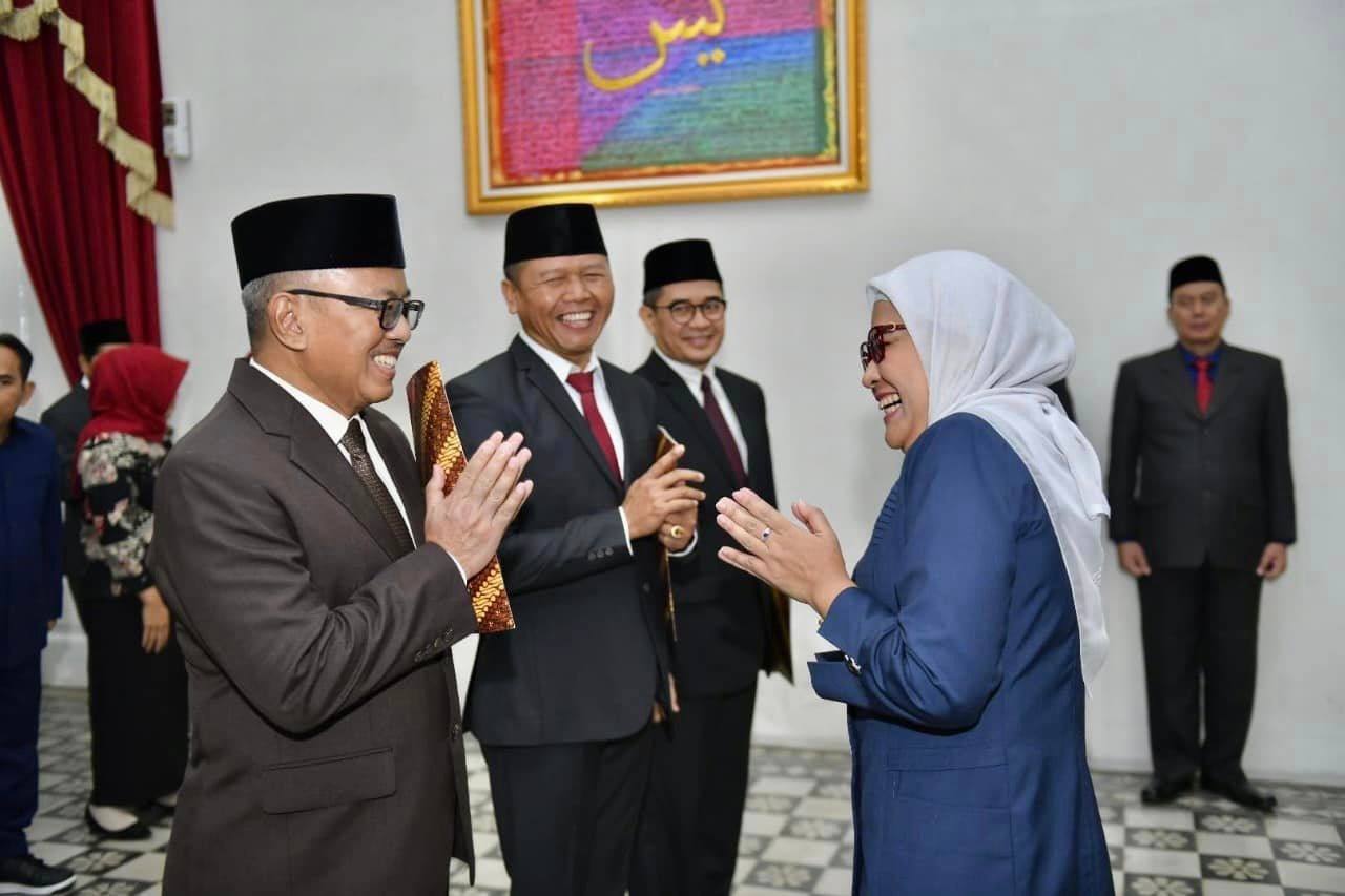 Bupati Indramayu Nina Agustina melantik dan mengambil sumpah 3 pejabat di Badan Usaha Milik Daerah (BUMD) Kabupaten Indramayu, di Pendopo Indramayu, Sabtu (31/12/2022).