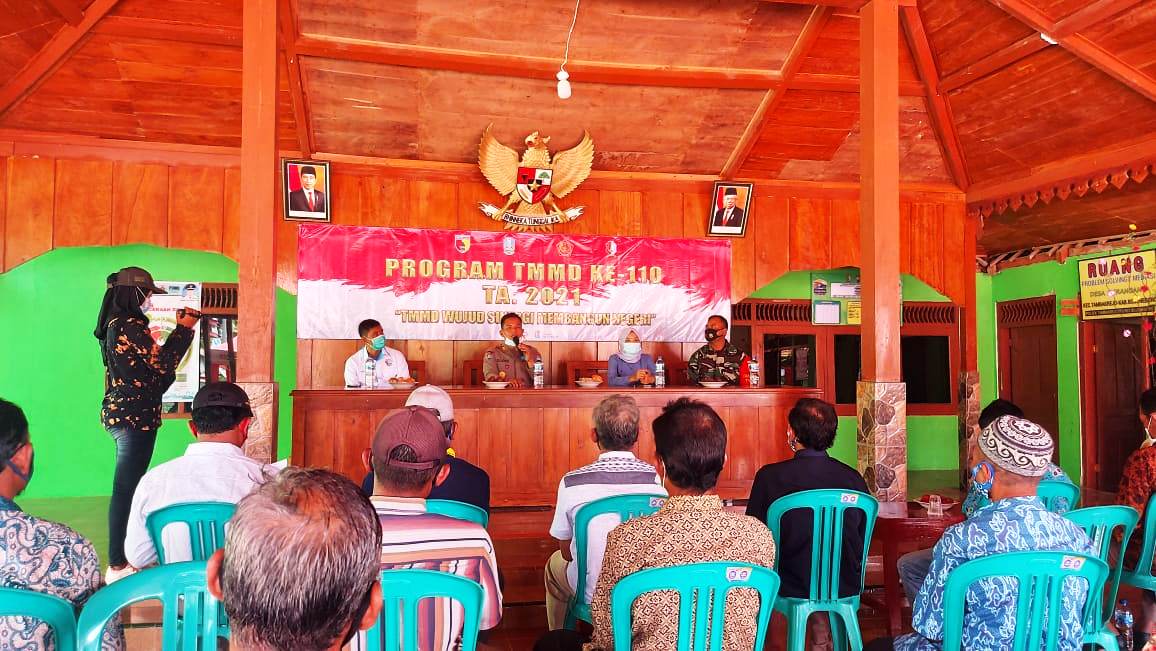 Tampak Kasat Binmas Polres Bojonegoro, AKP Sujono, mengedukasi warga di Aula Balai Desa Ngrancang. Sabtu (20/3/2021).
