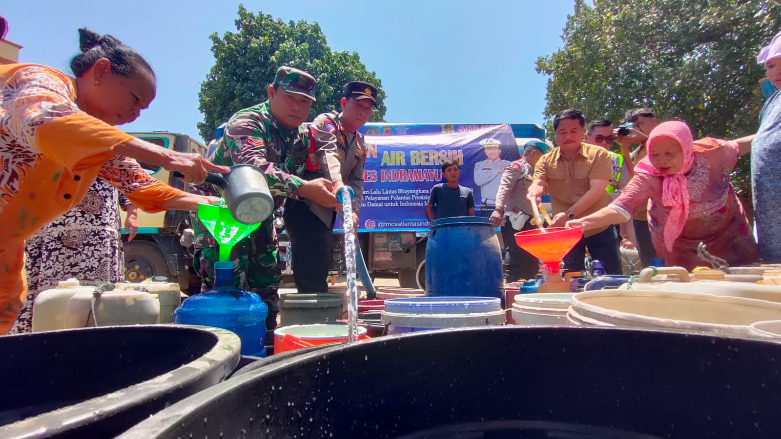 Kapolres Indramayu AKBP M Fahri Siregar didampingi Kasat Lantas, AKP Bagus Yudo Setyawan mengatakan, pihaknya mendistribusikan bantuan air bersih sebanyak 50 ribu liter. Air bersih tersebut didistribusikan ke lima lokasi di tiga kecamatan, yakni ke Desa Dadap, Kecamatan Juntinyuat, Krangkeng dan Karangampel.