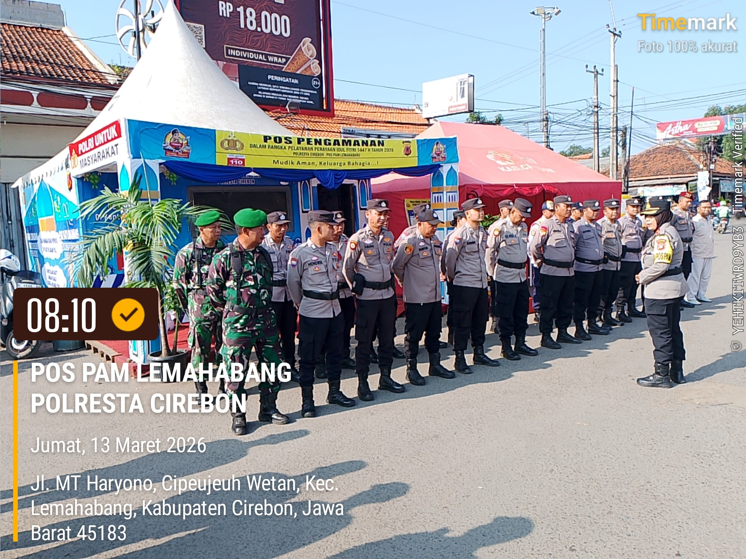Pelita News Cirebon Timur — POS PAM Lemahabang Polresta Cirebon melaksanakan Apel Gelar Pasukan dalam rangka pelaksanaan Operasi Ketupat Lodaya 2026 sebagai bentuk kesiapan pengamanan Hari Raya Idul Fitri 1447 H. Kegiatan apel tersebut dipimpin langsung oleh KA POS PAM Lemahabang yang juga Kapolsek Lemahabang, Kompol Yuliana, S.AB, M.Si. Jum’at (13/3/2026).