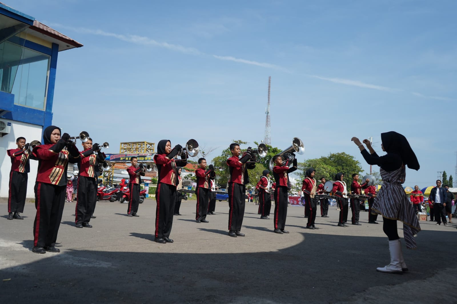 Pada kesempatan tersebut, Bupati Indramayu, Nina Agustina bersama seluruh jajaran Satuan Kerja Perangkat Daerah (SKPD) di lingkungan Pemerintah Kabupaten Indramayu menyaksikan langsung aksi Marching Band.