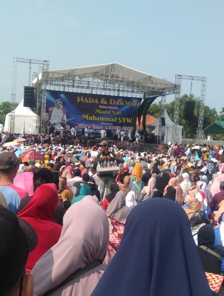Dalam rangka memperingati Maulid Nabi Besar Muhammad Shalawa hu Alaihi Wasalam Haji Satori Anggota DPR RI Fraksi Partai Nasdem menghadirkan Raja dangdut Haji Rhoma Irama Bersama Soneta Grup gelar
