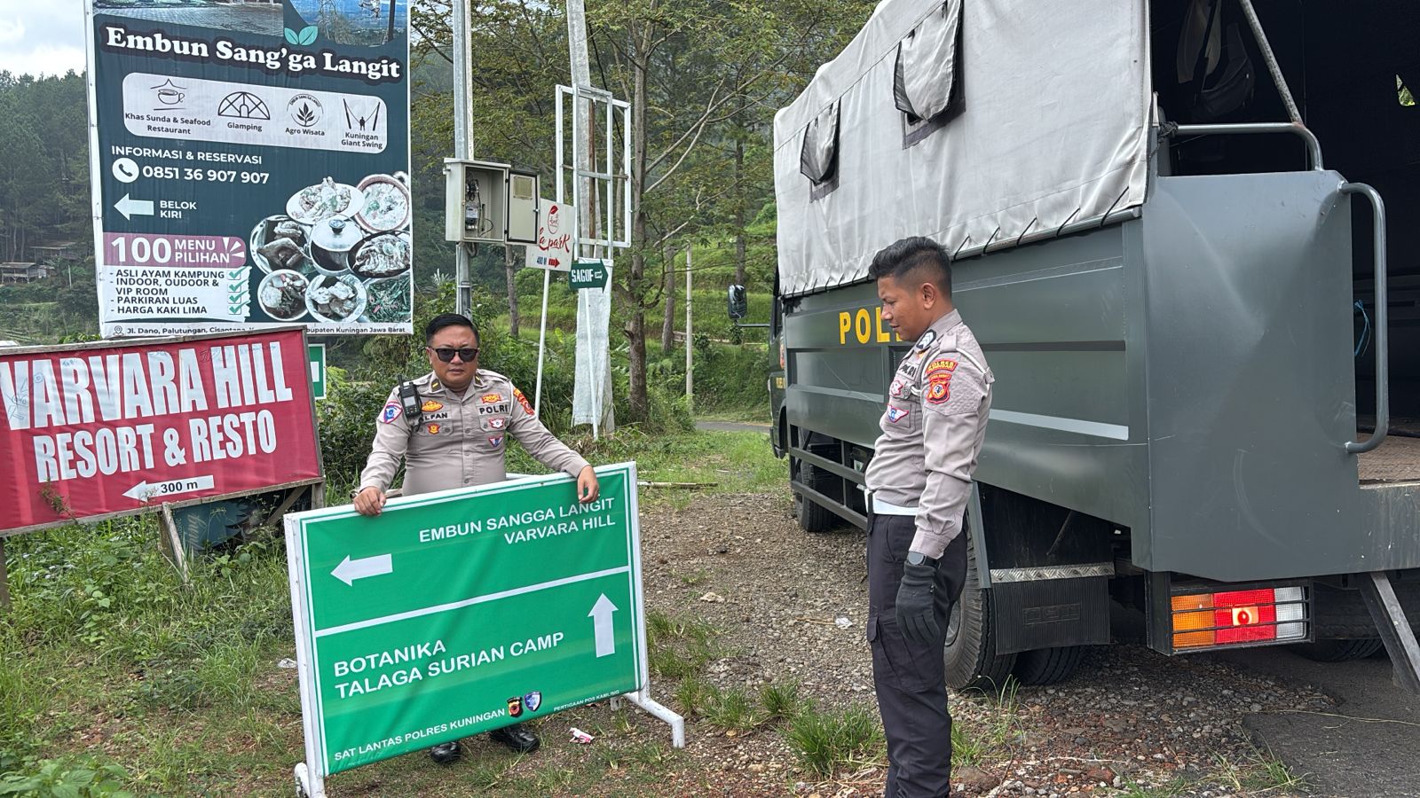 Satlantas Polres Kuningan juga melakukan langkah mitigasi di jalur wisata Palutungan–Puncak, yang dikenal memiliki medan jalan cukup menantang. Di lokasi tersebut, petugas memasang bantalan pengaman menggunakan karung berisi jas hujan di ujung jalur, tepatnya di samping SD Negeri 2 Puncak, sebagai antisipasi apabila terjadi kecelakaan.