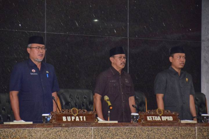 Bupati Indramayu Nina Agustina yang diwakili Staf Ahli Kemasyarakatan dan Sumber Daya Manusia (SDM) Setda Indramayu hadir dalam rapat Paripurna DPRD Indramayu tersebut.
