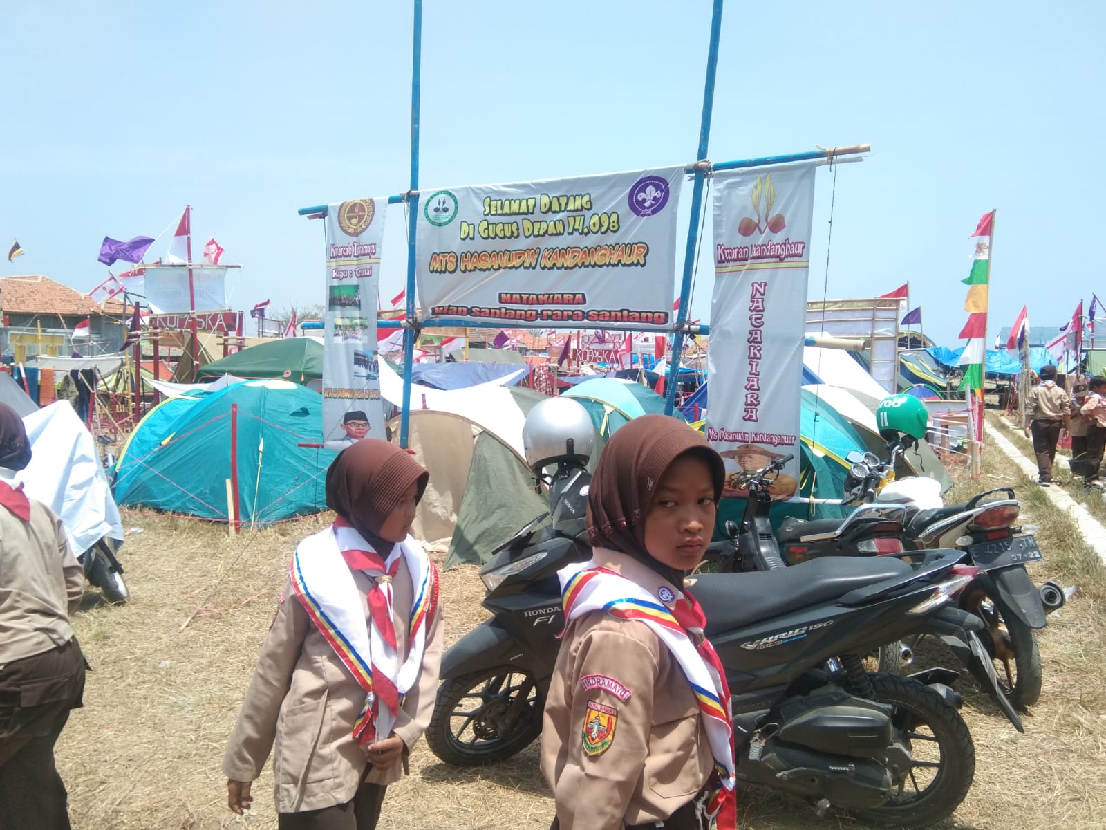 Bupati Indramayu , HJ , Nina Agustina , SH , MH , CRA , Melalui Camat Kandanghaur , Hatta Direja S STP , Meresmikan kegiatan berkemah Kwarrcab indramayu , Drs , H , Jajang Sudrajat bersama K a , Kwarran Kandanghaur , Abu bakar , S Pd dengan Ketua Panitia , H , Durahim , S Pd dan Cariman , S Pd , MM , M Si , Di Buper Eretan Kulon Kecamatan Kandanghaur Kabupaten indramayu . Selasa 3 /10 / 2023 .