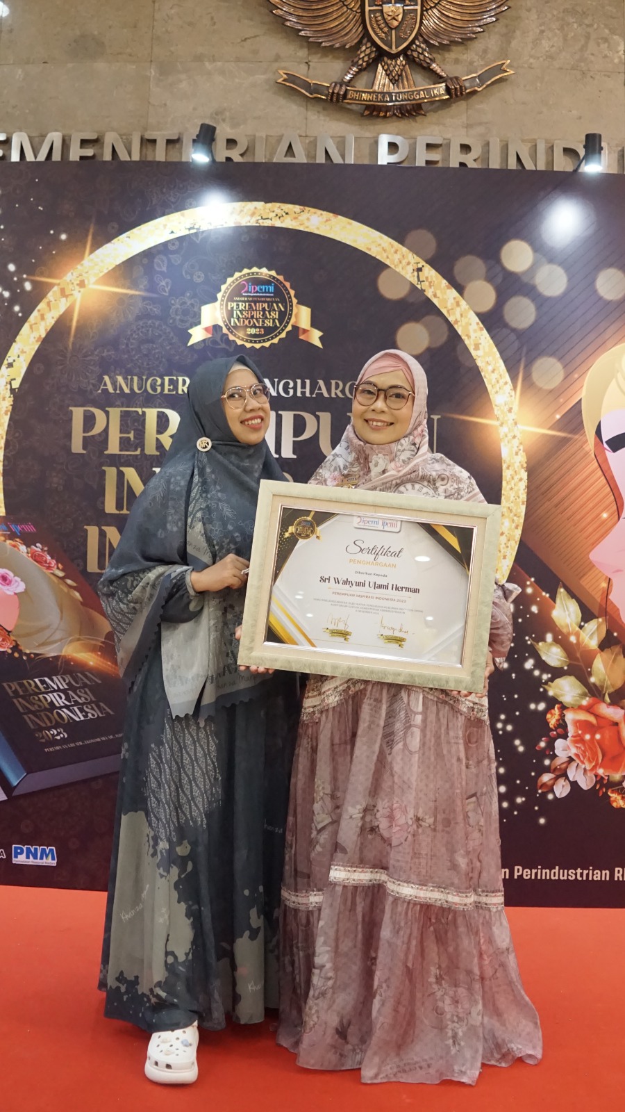 Ajang penghargaan anugerah perempuan inspiratif Indonesia (PII) 2023 yang diselenggarakan Ikatan Pengusaha Muslimah Indonesia (IPEMI) berbarengan dengan pameran oleh pelaku UMKM se Indonesia. Acara ini dihadiri secara langsung oleh Menteri Perindustrian, Agus Gumiwang Kartasasmita.