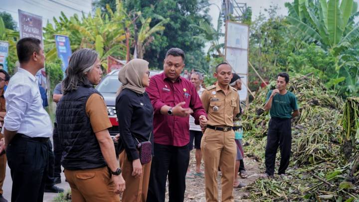 Melihat kondisi itu, Bupati Indramayu Hj. Nina Agustina didampingi Kepala Dinas PUPR Asep Abdul Mukti, Camat Sindang Suyitno beserta Kepala Desa Penganjang Sugeng meninjau kondisi sungai Tjimanoek lama di wilayah Kecamatan Sindang, Senin (04/12/2023).