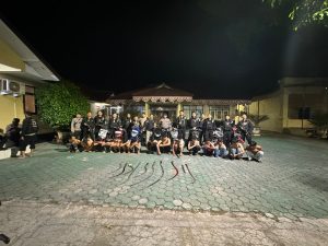 Pelita News | Kabupaten Cirebon.- Tim Patroli Raimas Macan Kumbang 852 Polresta Cirebon berhasil menggagalkan tawuran di Kecamatan Lemahabang Kabupaten Cirebon, pada Sabtu (10/8/2024) dinihari kira-kira pukul 02.30 WIB. Petugas mengamankan 13 orang yang diduga hendak tawuran dan kedapatan membawa senjata tajam (sajam).