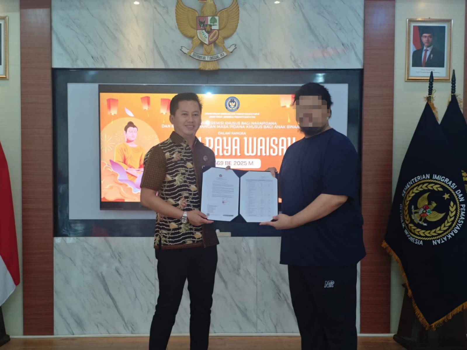 Pelita News I Indramayu – Lembaga Pemasyarakatan (Lapas) Kelas IIB Indramayu memberikan remisi khusus kepada warga binaan pemeluk agama Budha. Pemberian remisi khusus itu diberikan kepada BK alias Ahong bertepatan dengan Hari Raya Waisak tahun 2025.