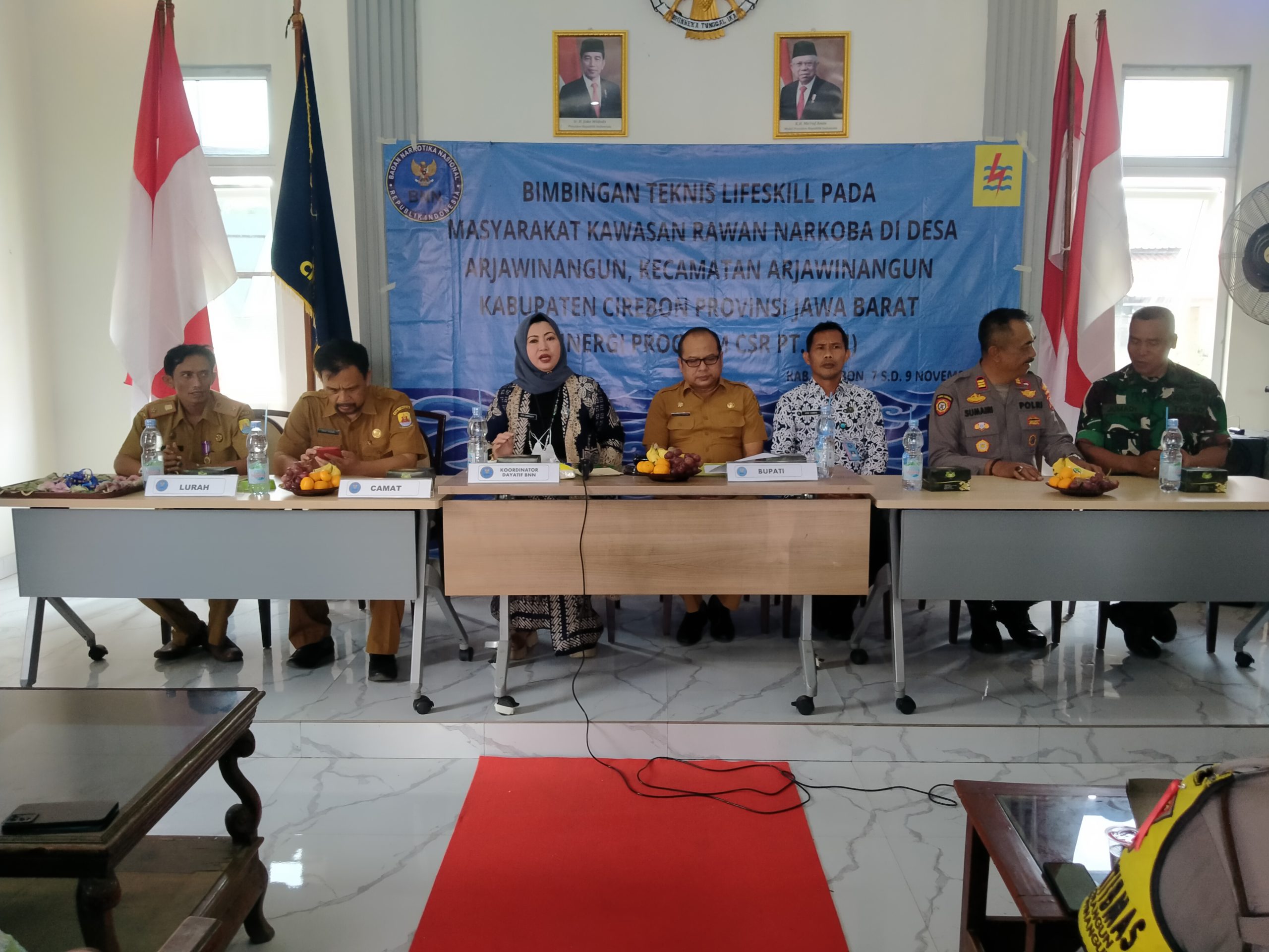 Direktorat Pemberdayaan Alternatif Badan Narkotika Nasional RI gelar bimbingan teknis lifeskill pada masyarakat kawasan rawan narkoba di Desa Arjawinangun Kecamatan Arjawinangun Kabupaten Cirebon, yang dilaksanakan di aula Balai Desa Arjawinangun Selasa (07/11). Kegiatan itu juga dihadiri Perwakilan Bupati Cirebon, Kepala PLN UP3 Cirebon, KA. BNN Kota Cirebon, Kapolresta Cirebon, Dandim Kabupaten Cirebon, Camat Arjawinangun, Kuwu Arjawinangun, Danramil, Kapolsek Arjawinangun, Babinkamtibmas dan Babinsa Arjawinangun.