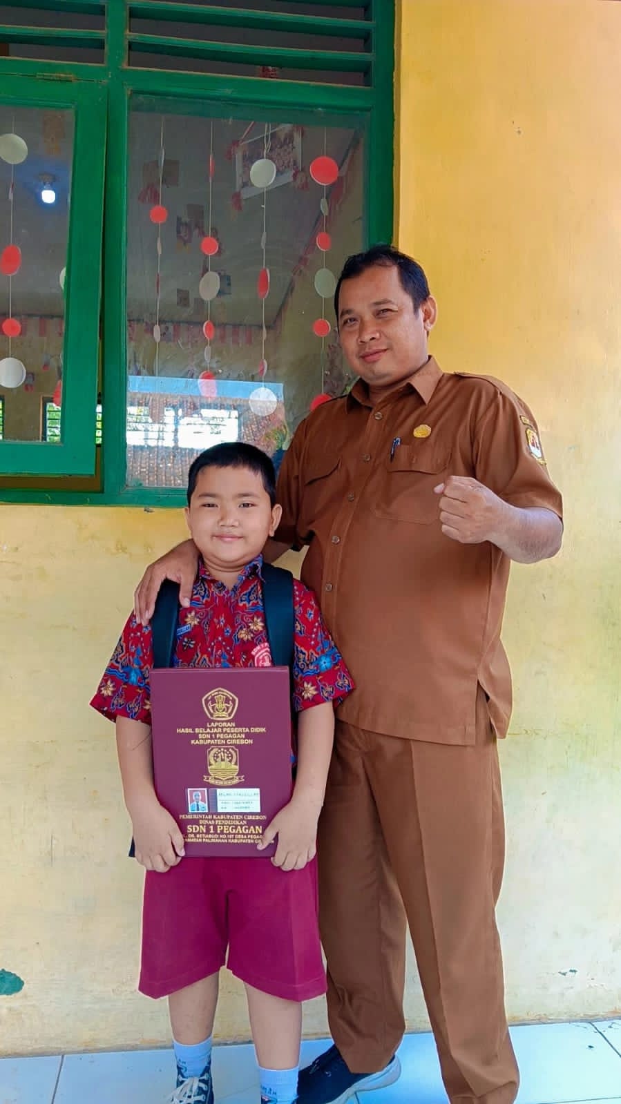 Perangkat Desa Pegagan Kecamatan Palimanan Kabupaten Cirebon, Wasana Kartakusuma, meluangkan waktu untuk menghadiri kegiatan pengambilan rapor putranya, Afwan Syauqillah, kelas 4a di SDN 1 Pegagan pada Selasa ( 23/12/25 ).
